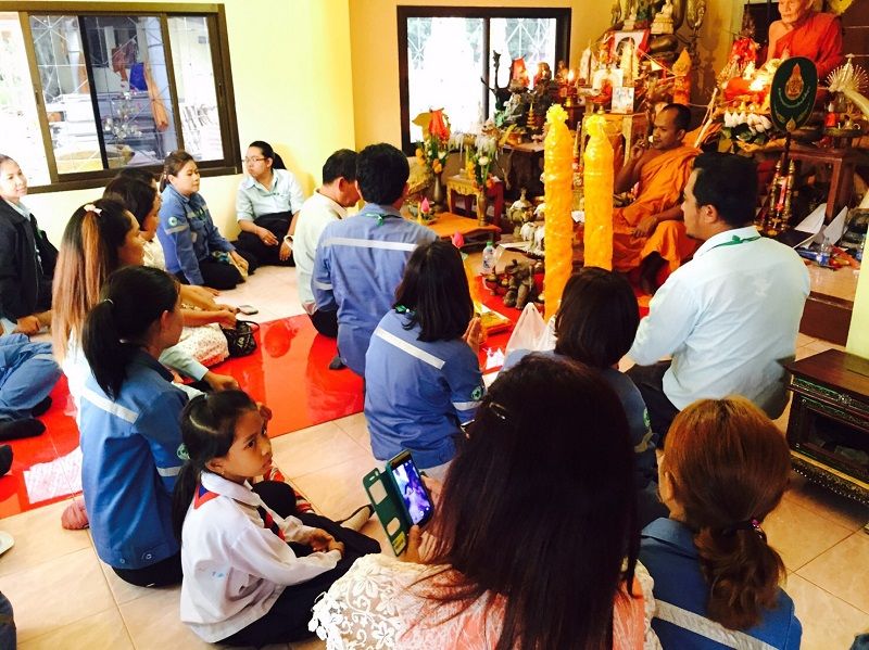 (4) คุณวัลลภ ธรรมปัญญาสกุล พร้อมด้วยพนักงานบริษัท คณะครูโรงเรียนวัดขุนตัดหวาย ร่วมถวายเทียนพรรษา ให้แก่พระวินัย วุฑิโก เจ้าอาวาสวัดขุนตัดหวาย