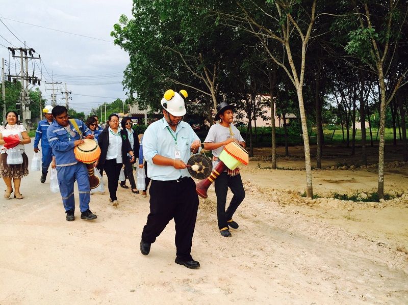 (2) พนักงานบริษัท พร้อมด้วยคุณอรัญ จันมณี ผรส.หมู่ที่ 3 ร่วมตีกลองยาวในขบวนแห่เทียนพรรษา