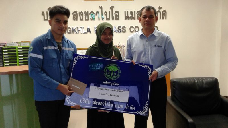เมื่อวันที่ 13 พฤษภาคม 2559 คุณวัลลภ ธรรมปัญญาสกุล กรรมการผู้จัดการ เป็นตัวแทนบริษัท สงขลาไบโอ แมส จำกัด มอบข้าวสาร จำนวน 5 กระสอบ ให้แก่มัสยิดบ้านพลี อำเภอนาทวี เพื่อใช้ในการจัดงานการกุศลสมทบทุนต่อเติมและซ่อมแซมมัสยิด และสนับสนุนงบประมาณในการจัดข่ายอาสา ให้แก่ เครือข่ายเยาวชนตำบลนาทวี จำนวน 5000 บาท