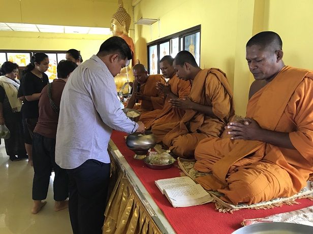 (2) คุณกิตติพงษ์ ฐิระพันธ์ รองกรรมการบริษัท สงขลาไบโอ แมส จำกัด ร่วมตักบาตร พร้อมกับชาวบ้านในตำบลขุนตัดหวาย