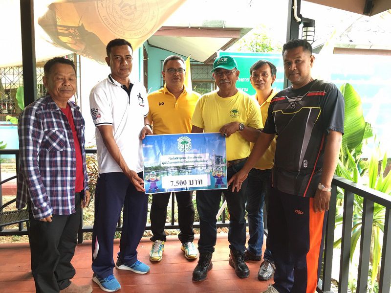 ภาพที่ 4 - 5 วันที่ 5 กรกฎาคม 2562 มอบเงินสนับสนุนการจัดการแข่งขันฟุตบอลฮารีรายออีดิ้ลอัฏฮา คัพ ครั้งที่ 1 จำนวน 7,500 บาท ให้แก่ องค์การบริหารส่วนตำบลขุนตัดหวาย